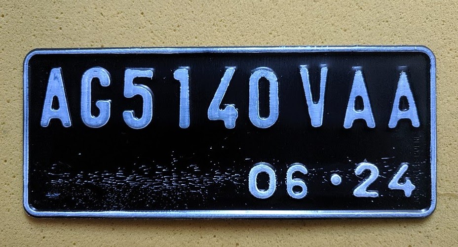 Baris pertama untuk menunjukkan kode wilayah berbentuk huruf, nomor polisi dalam angka, serta kode/huruf seri wilayah pada bagian akhir. Sedangkan baris kedua untuk menunjukkan bulan dan tahun masa berlaku dari TNKB tersebut. Masing-masing terdiri dari dua digit.