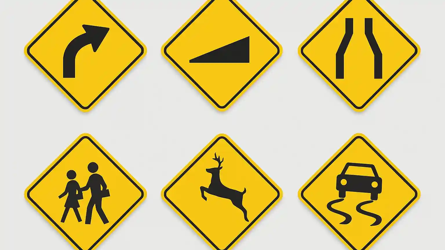 Berikut beberapa contoh rambu peringatan warna kuning yang sering ditemui di jalan raya Indonesia: