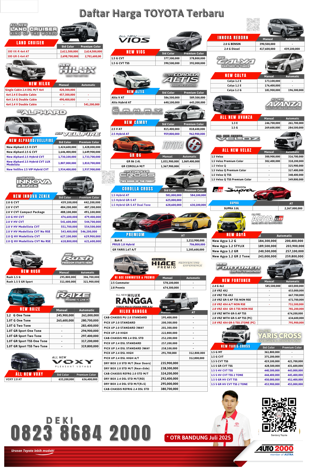 Cari tahu harga mobil Toyota impian Anda di Bandung dan sekitarnya (Jawa Barat) untuk bulan Juli 2025! Dapatkan informasi terlengkap mengenai harga On The Road (OTR), promo menarik, dan simulasi kredit terbaru dari dealer resmi Toyota di Bandung.