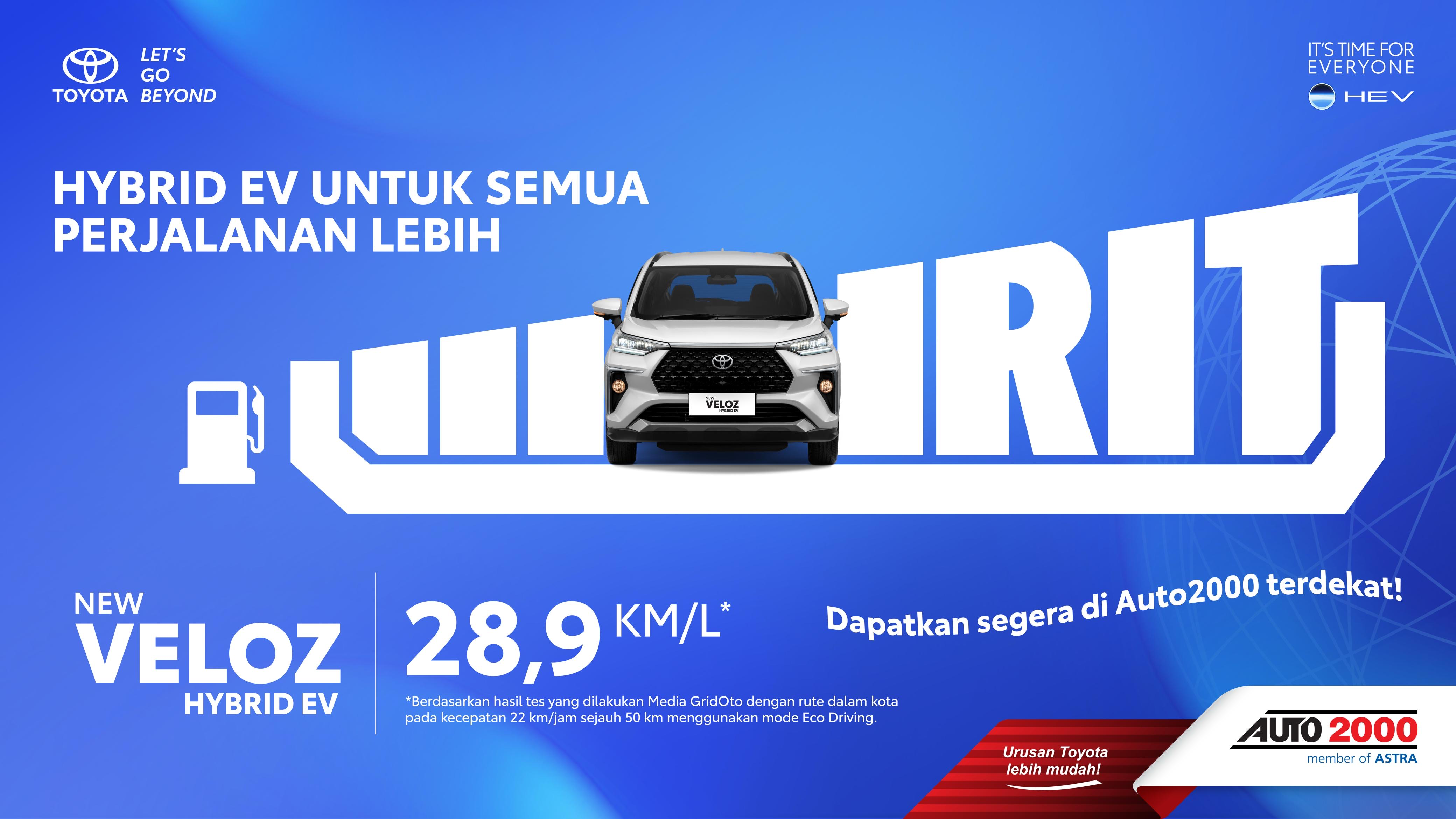 Segera Pesan New Veloz Hybrid EV si Hybrid yang super irit dengan konsumsi bahan bakar 1L untuk menempuh 28,9 km..