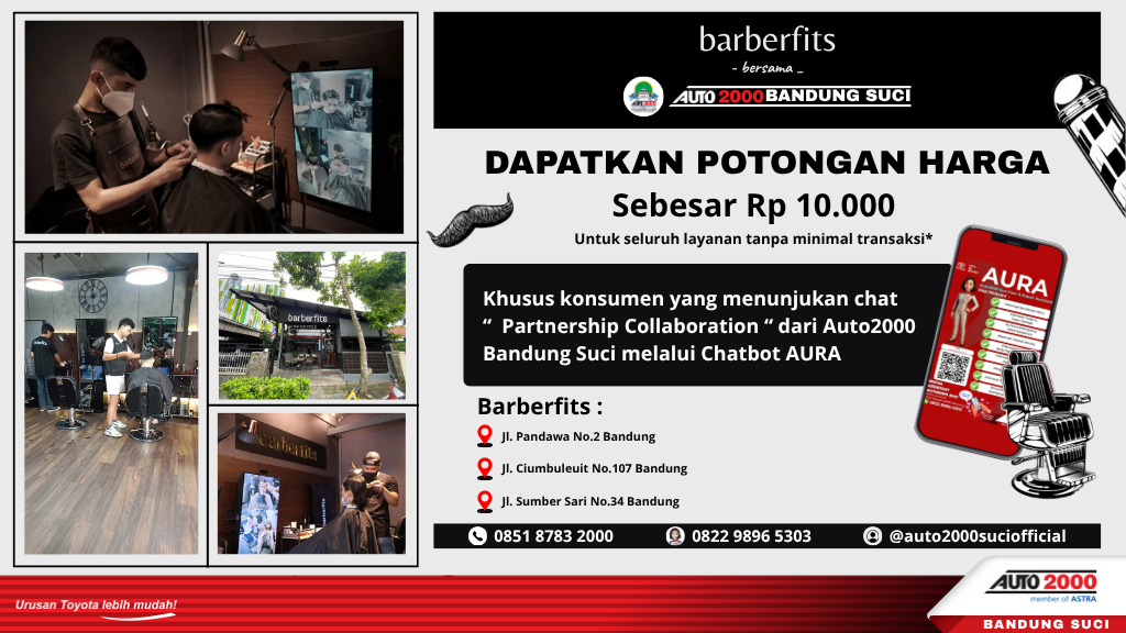 Kami berusaha momen delight bagi Auto Family tidak hanya berhenti saat pembelian kendaraan ataupun saat service di bengkel. Karena itu Auto2000 Suci berkolaborasi dengan Barberfit Bandung Area untuk memberikan tambahan value bagi setiap pelanggan setianya.