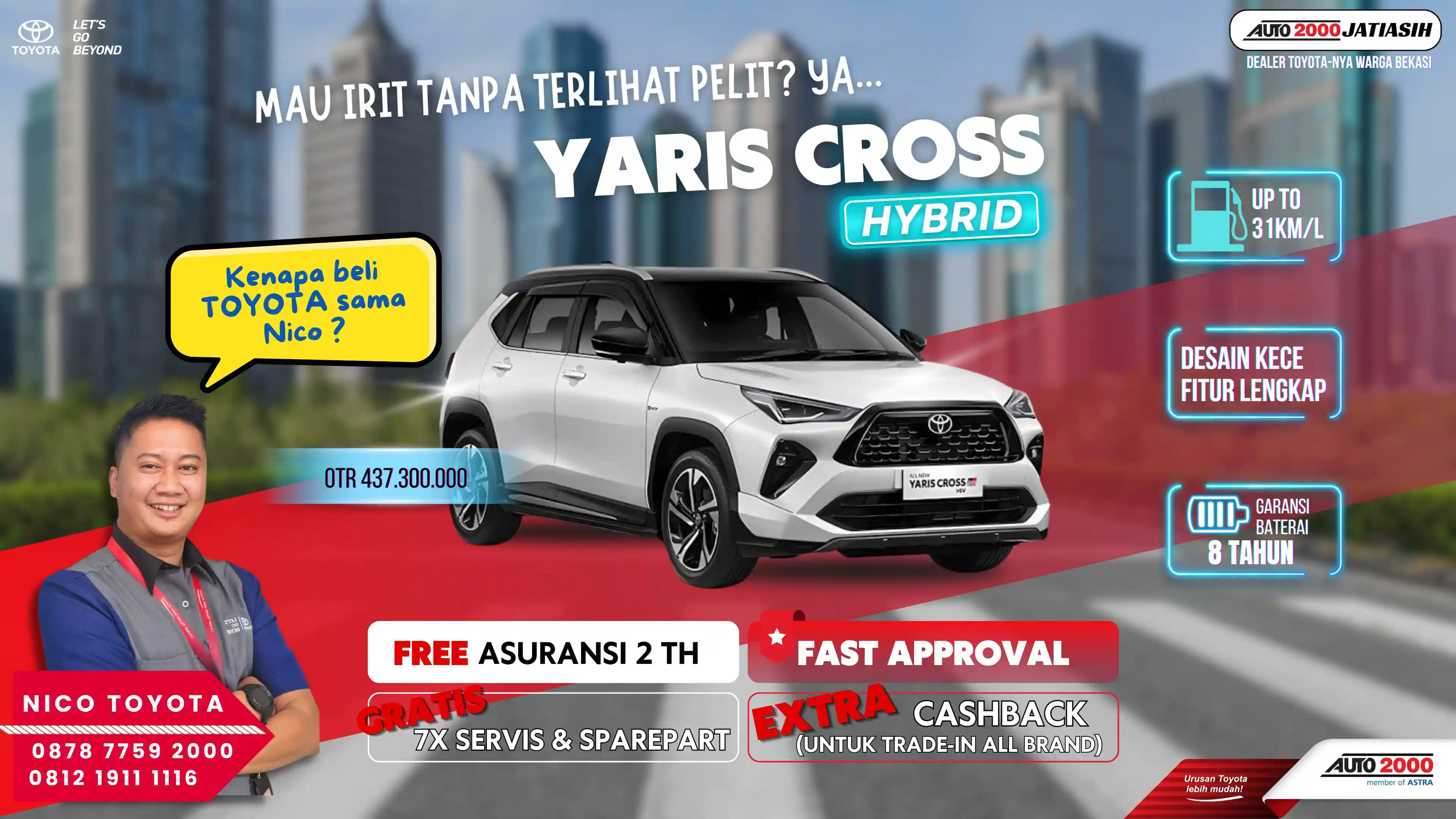 “Mau irit tanpa terlihat pelit? Ya... Yaris Cross Hybrid dari Nico Toyota jawabannya!”