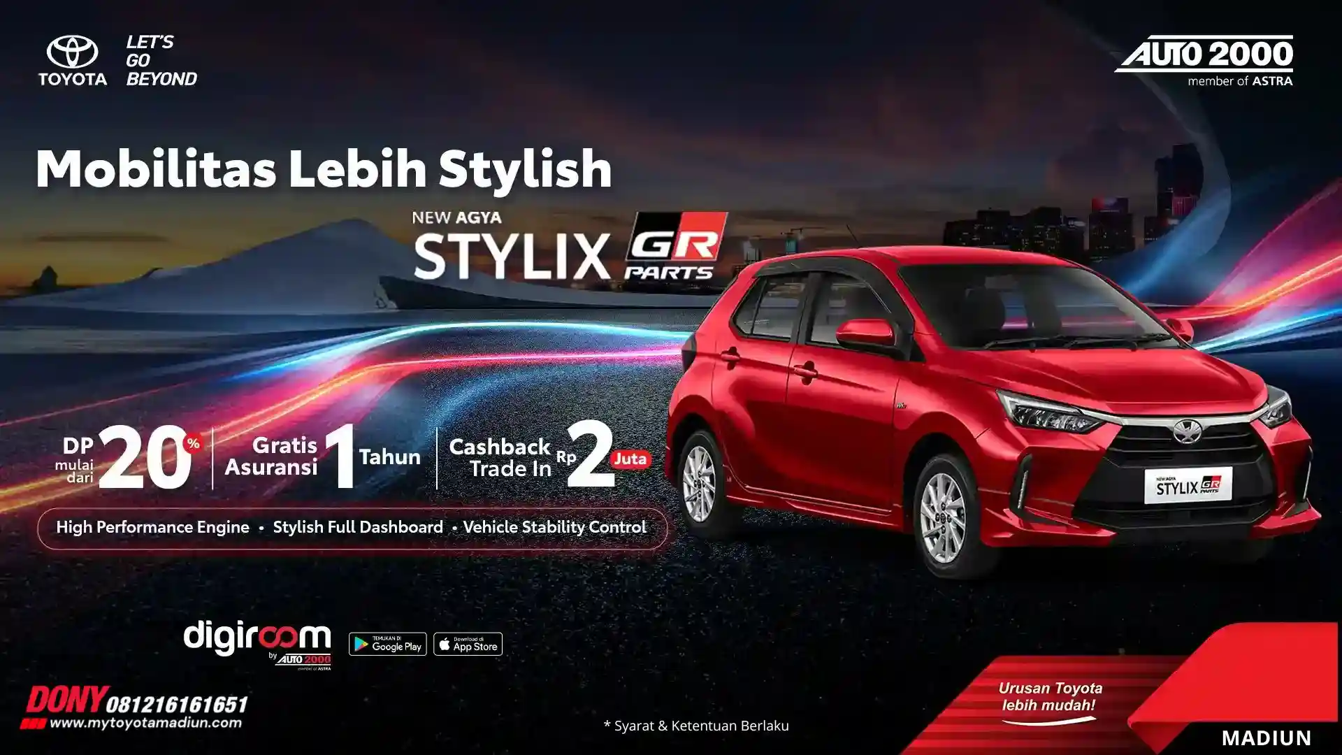 Tim sales kami yang profesional dan berpengalaman siap memberikan konsultasi dan penawaran terbaik, termasuk pilihan tukar tambah dan pembelian kredit sesuai kebutuhan Anda. Toyota Madiun memudahkan Anda memiliki All New Agya tanpa repot. Proses pembelian cepat dan transparan, serta berbagai pilihan paket pembiayaan fleksibel tersedia untuk Anda. Kami juga melayani pemesanan melalui media online WhatsApp/Email dan transfer pembayaran langsung ke rekening Astra International, sehingga Anda bisa bertransaksi dari rumah dengan aman & nyaman.