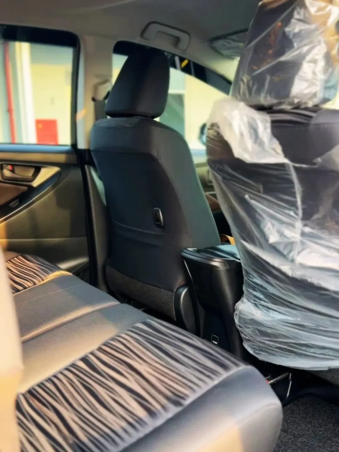 Salah satu pembaruan nyata di interior Toyota Innova Reborn 2025 adalah pola motif jok yang diperbarui dibanding generasi sebelumnya. Toyota tidak hanya mengganti warna atau bahan jok secara sederhana — tetapi menghadirkan desain motif kain yang lebih modern, lebih rapi, dan terasa lebih premium untuk pengalaman berkendara yang lebih nyaman dan mewah