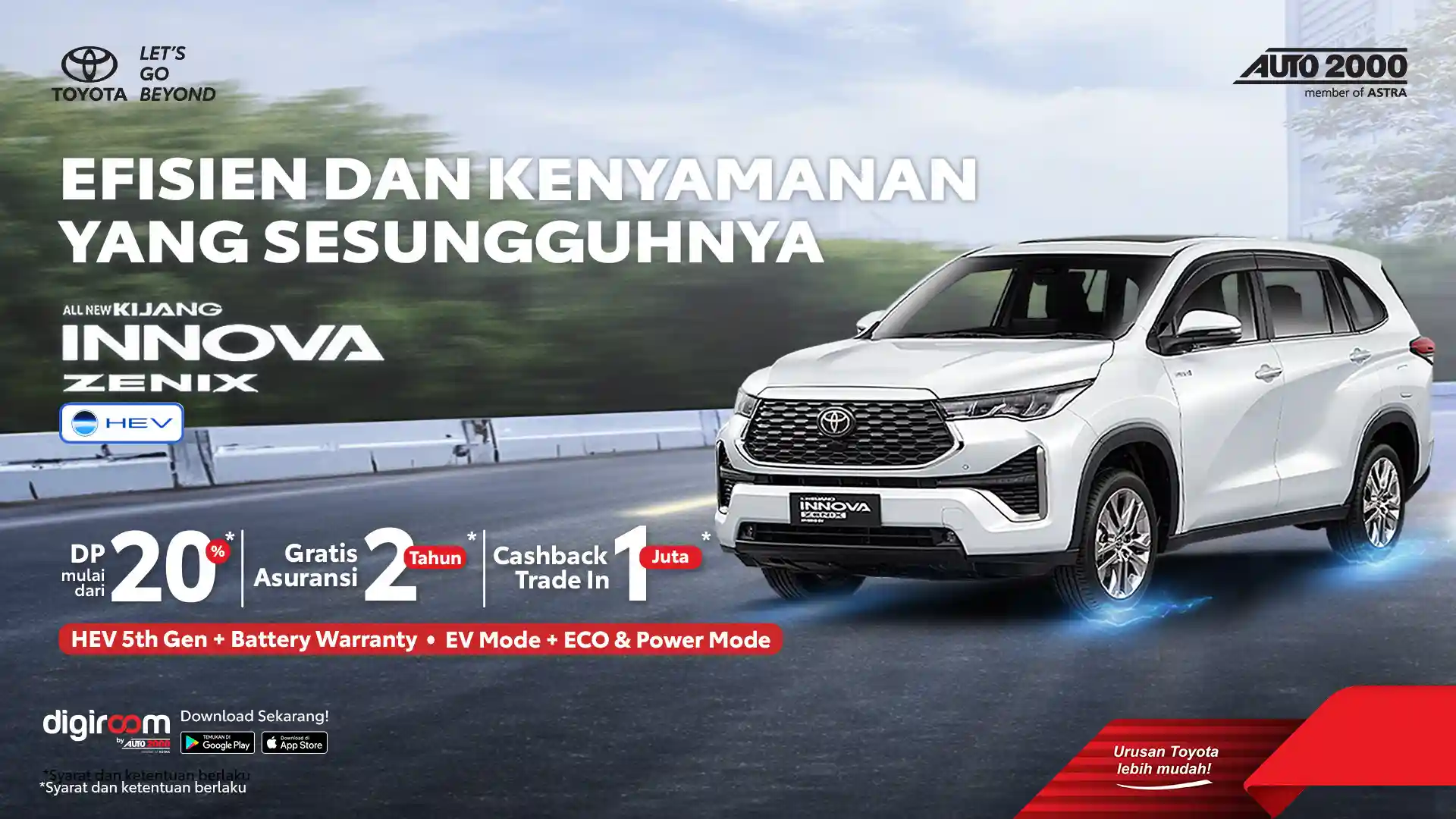 Nikmati kemudahan berkendara dengan teknologi yang lebih efisien bersama All New Kijang Innova Zenix HEV. Dibekali sistem hybrid, mobil ini memberikan kombinasi sempurna antara penggunaan bahan bakar yang hemat dan performa mesin yang tetap bertenaga untuk mendukung mobilitas Anda setiap hari.