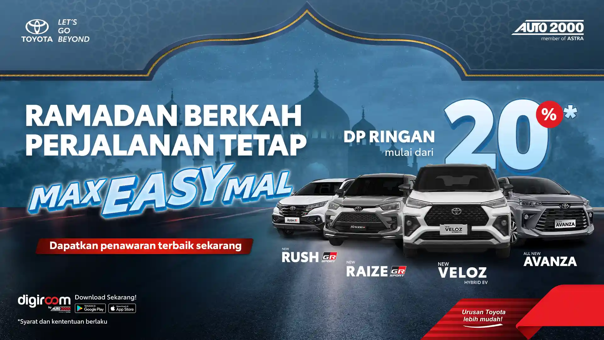 Saatnya wujudkan impian memiliki mobil Toyota dengan program MAXEASYMAL, solusi pembelian yang lebih mudah dan menguntungkan di bulan Ramadan.