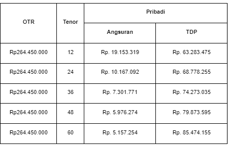 Toyota Avanza tersedia dalam 5 varian. Berikut adalah rincian harga masing-masing varian bila Anda uang muka yang Anda bayarkan adalah sebesar 20%: