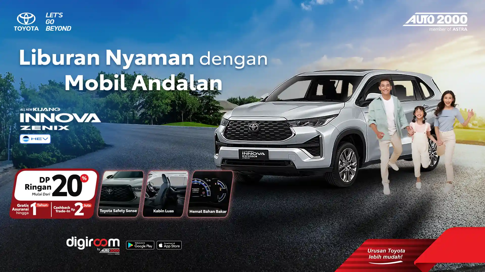 Dapatkan Innova Zenix Hybrid di Auto2000 dengan Program DP mulai dari 20%, plus Gratis Asuransi 1 Tahun. Tambahan spesial: Cashback 2 juta untuk pembelian Trade-In!