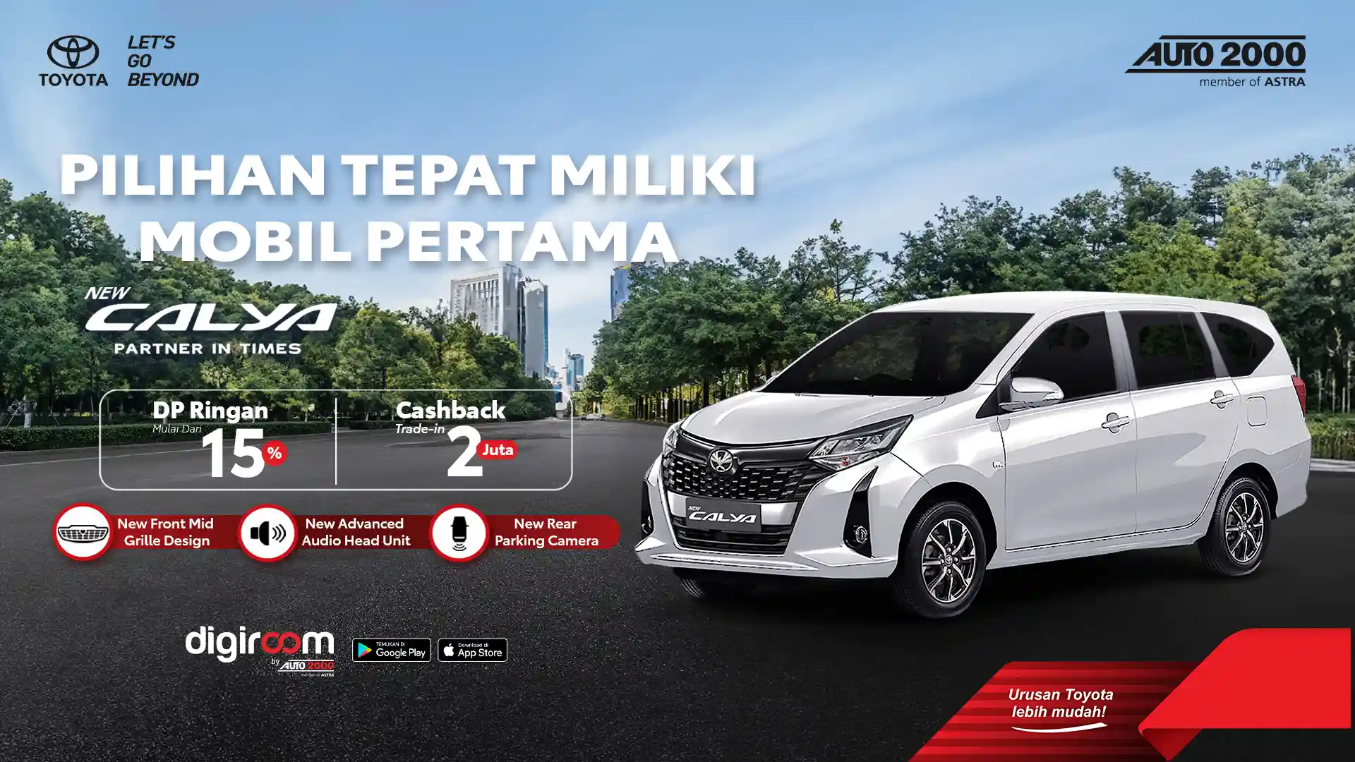 Memiliki Mobil Pertama tentu menjadi momen penting dalam Hidupmu. Tentu nya harus mobil yang memiliki kualitas dan durabilitas yang tinggi. Toyota Calya dapat menjadi pilihan tepat untuk mobil pertama mu, dengan tampilan dan fitur yang lebih baik dengan front mid grille design, advanced audio head, dan new rear parking camera.