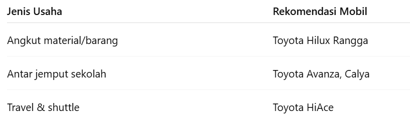 Tips Memilih Mobil Toyota Murah Sesuai Jenis Usaha